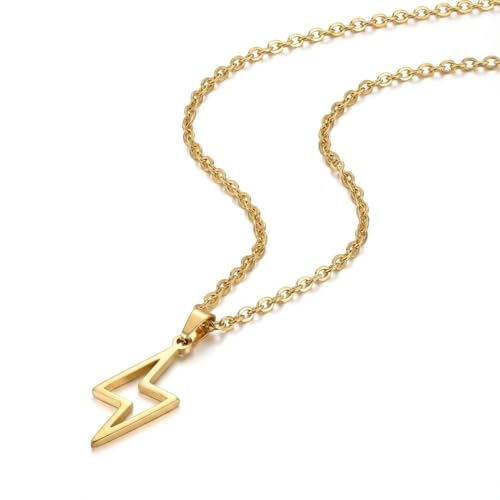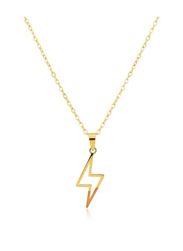 Generic - Unisex Lightning Chain 18K Gold Plated | Energy and Speed Badge Pendant | Smooth and Trendy Jewelry | Stainless Steel Bold Gift