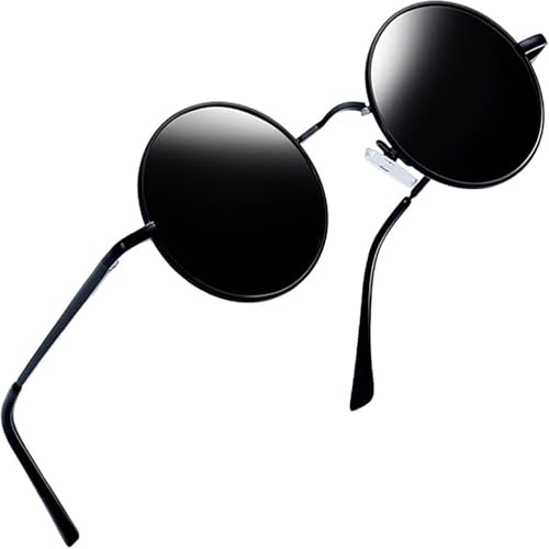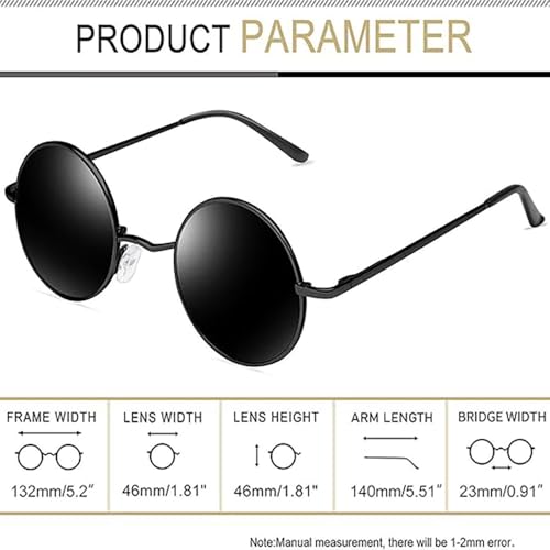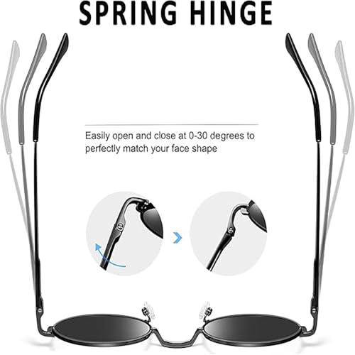 fashion mania - نظارة شمسية دائرية معدنية للجنسين بعدسات مستقطبة للحماية من الاشعة فوق البنفسجية 400 بمفصلات زنبركية 0-30 درجة مرنة بعرض 132 ملم باطار كلاسيكي انيق بنمط كايرو ستريت اساسي