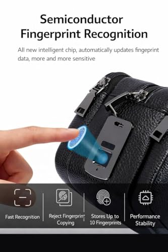 Generic - شنطة يد ذكية بقفل بصمة الاصبع للجنسين مع تقنية مضادة للسرقة - 4 سحابات امان، سعة طباعة 10 اصابع، مقبض وادوات ذهبية اللون، متوافقة مع الهواتف الذكية/التابلت/اللاب توب