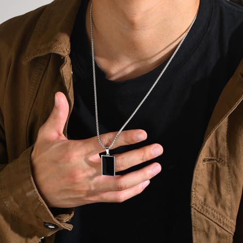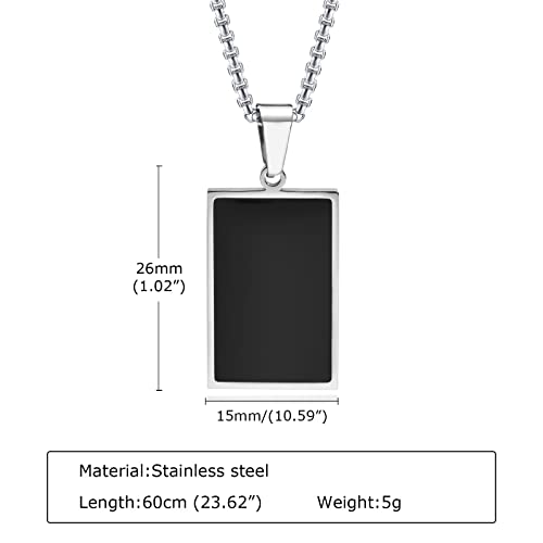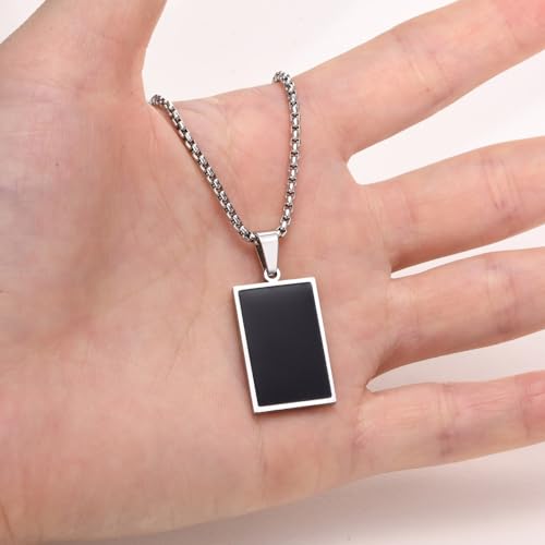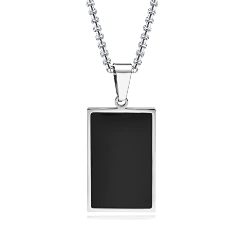 xuanhang - Unisex Stainless Steel Black Onyx Pendant Necklace for Men Women,Titanium Steel Black Agate Rectangle and Square Charm Jewelry Chain Necklace for Mens,Geometric Pendant Necklaces for Man Women,24inch