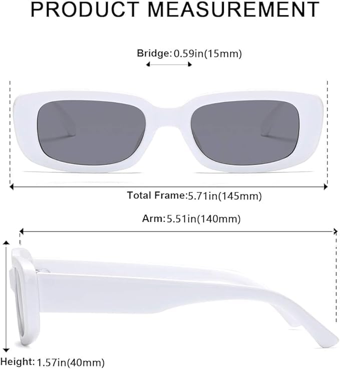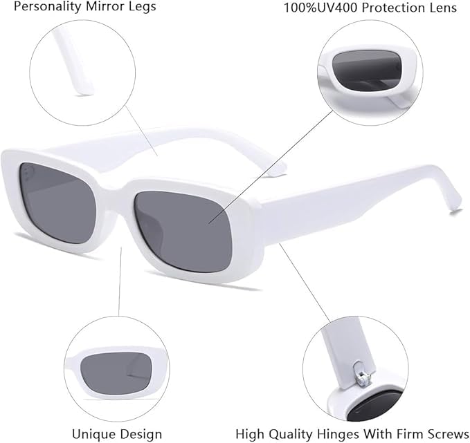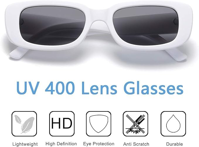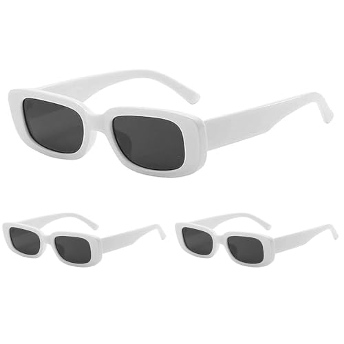 Generic - Unisex Sunglasses Rectangle Sunglasses Vintage Square Frame UV Protection Fashion Sunglasses White 3 Pieces