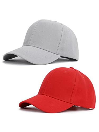 Generic - اثنين كاب رياضي البيسبول و السناباك للجنسين، لون احمر و رمادي، مقاس واحد