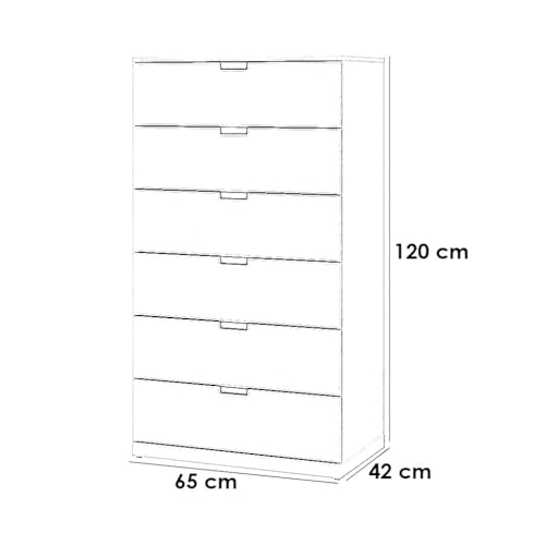 - Color: White has 6 drawers Material:MDF Wood Height (cm):146 Length(cm):80 Depth(cm):45 Needs to be assembled:No