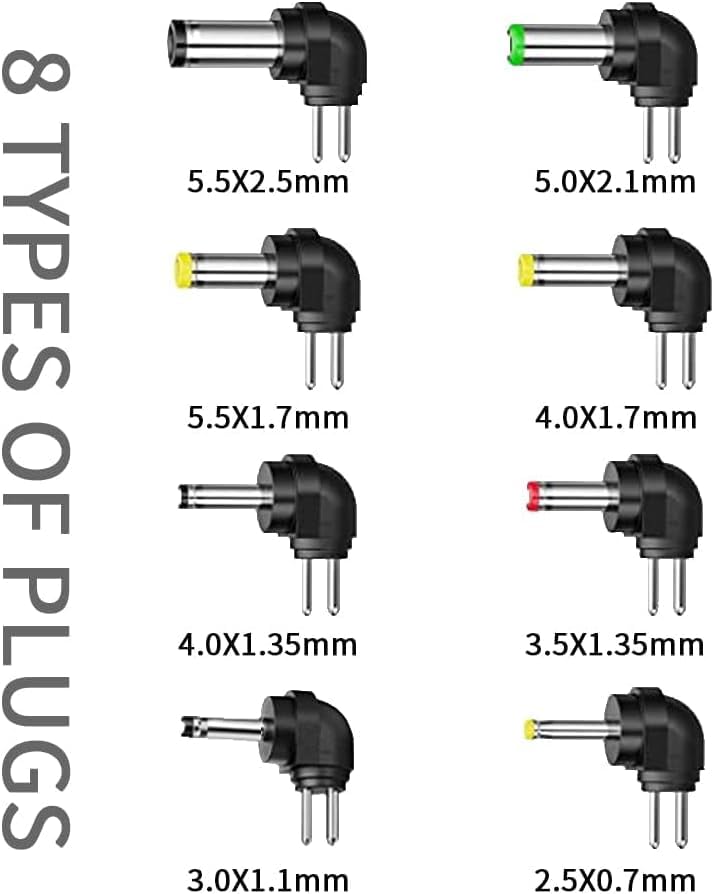 - Multiple Connector Options: Includes 8 interchangeable adapter plugs to ensure compatibility with various devices such as routers, speakers, LED lights, and other small electronics