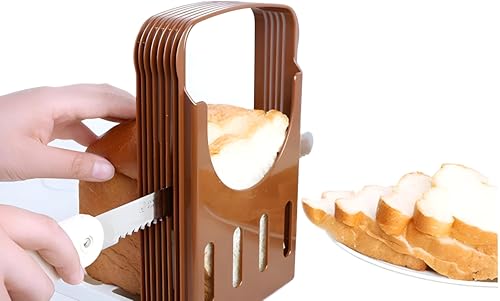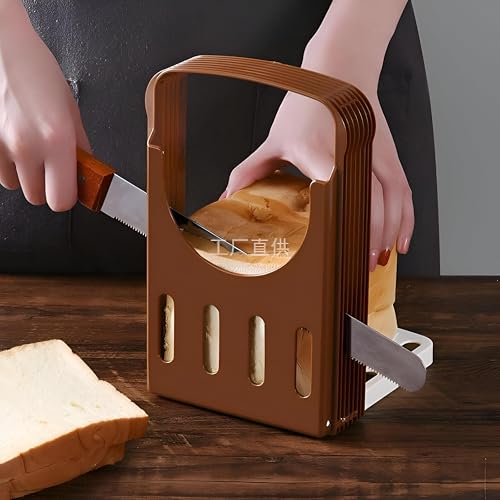 Generic - Universal Bread Slicing Tool - Smooth, controlled cuts for toast and cakes using adjustable thickness settings, compact brown and white design for countertop use.