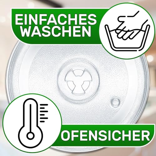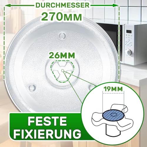 - The universal microwave plate with a diameter of 270 mm, is equipped with 3 locking feet on the base, allowing it to be securely attached to the central holder of the microwave oven.