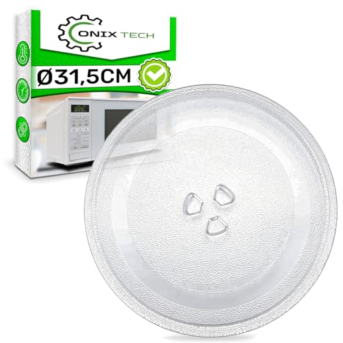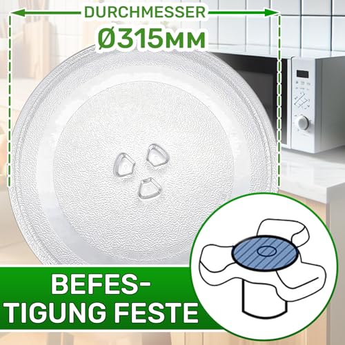 - FEATURES - Universal microwave plate has a diameter of 31.5 cm and is equipped with three support legs, which ensure a stable and secure attachment to the central rotating element of the appliance