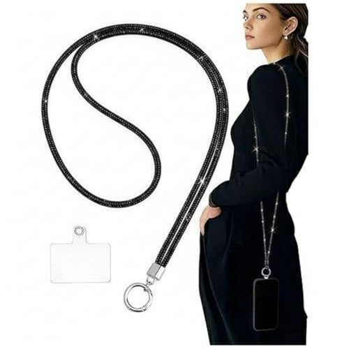 Generic - Universal Phone Lanyard Crossbody, Shiny Rhinestone Crossbody Strap with Metal Ring and Phone Patch, Stylish Hands-Free Phone Holder,Diamond Phone Neck Holder for Women (Black)