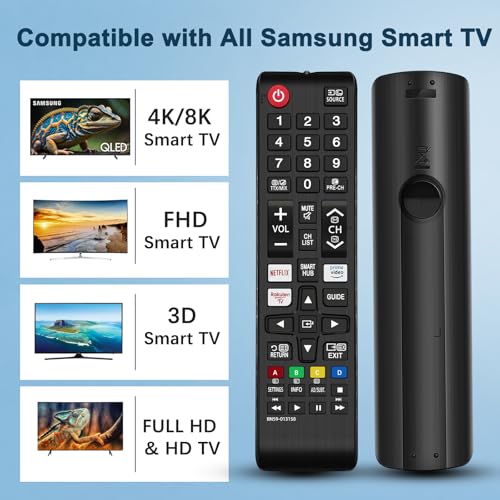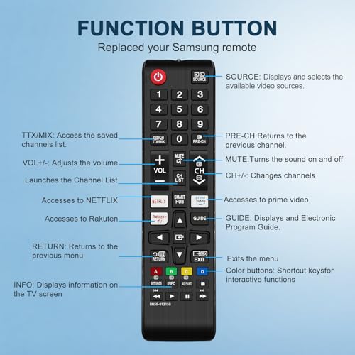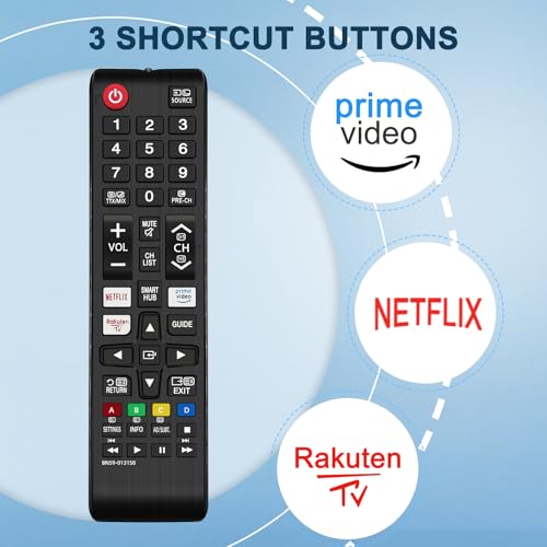 BINGKELE - جهاز تحكم عالمي لسامسونج مع زر تلفزيون نتفليكس وخدمة Prime Video راكيوت، جهاز تحكم لتلفزيون سامسونج متوافق مع جميع طرازات تلفزيونات سامسونج LCD ليد HDTV وتلفزيونات ذكية ثلاثية الأبعاد