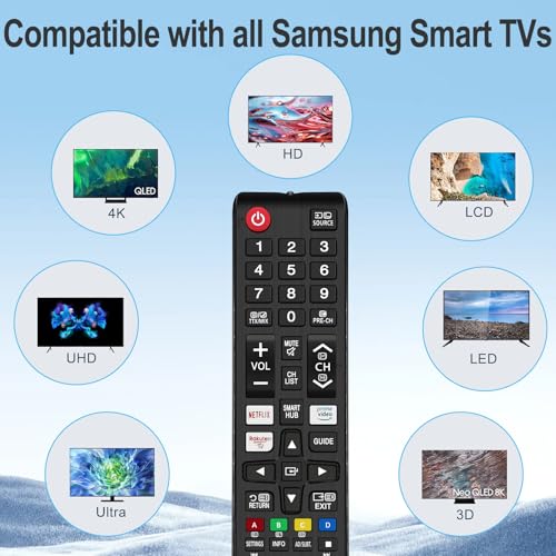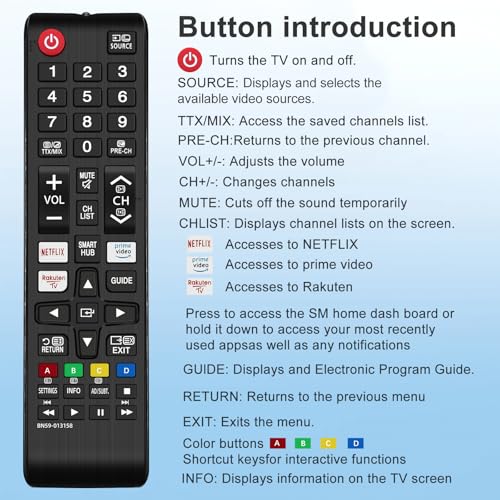 - 【HIGH QUALITY】Samsung tv remote control replacement,This universal remote is ergonomically designed, the body is made of ABS material, and the buttons are made of rubber.A comfortable remote control will give you a better viewing experience.