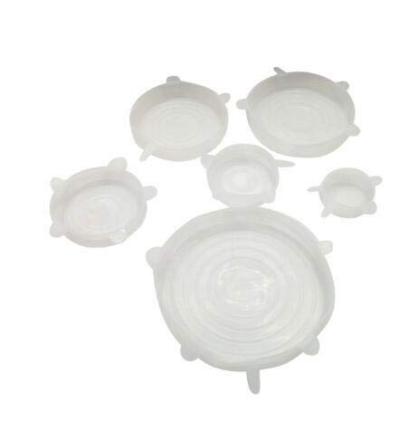 No-Branded - أغطية عالمية مرنة من السيليكون متينة وقابلة لإعادة الاستخدام ومقاومة للحرارة لحفظ الطعام من يليكويكان، اللون: شفاف، مقاس: 6 قطع)