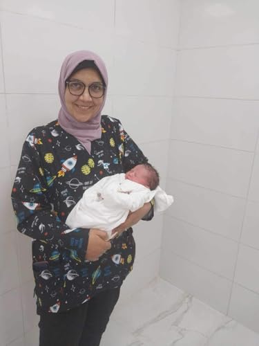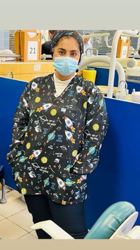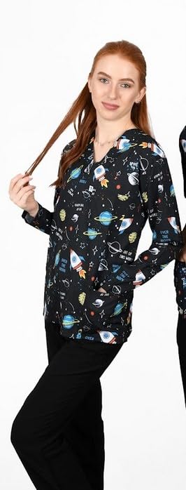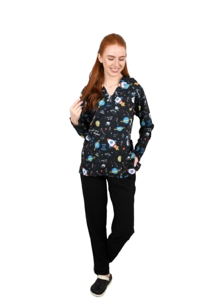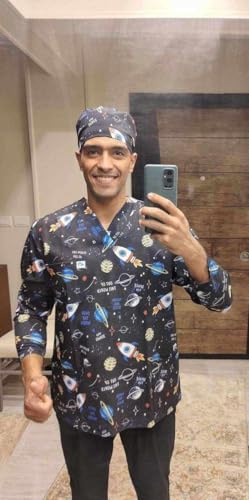Resan Medical wear - Universe Hospital Medical Scrub printed Hospital Medical Scrub unisex-dental - Surgical scrubTop only -LONG Sleevs - Doctor Scrub -Medical Uniform (BLUE, Size M)