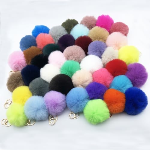 Unpafcxddyig - Unpafcxddyig 43 Pieces Pom Pom Keychains Artificial Rabbit Fur Ball Keychain Fluffy Pom Pom Puff Ball Key Rings,2.36in