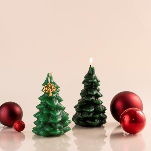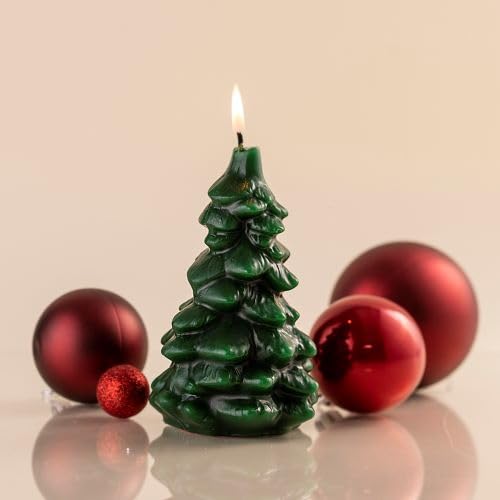 Candle Connection - Unscented Green Christmas Tree Candle 9cm W x 14cm H Burn Time 30-35 Hours