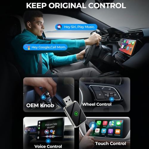 - 2 IN 1 Carplay Wireless Adapter : Easily upgrade wired CarPlay or Android Auto to wireless! Say goodbye to tangled cables and welcome a new level of driving convenience. This wireless carplay adapter supports navigation, music playing, voice assistant, phone calls, text messaging, and more, making your car cleaner and offers a safer driving experience and a more enjoyable journey.