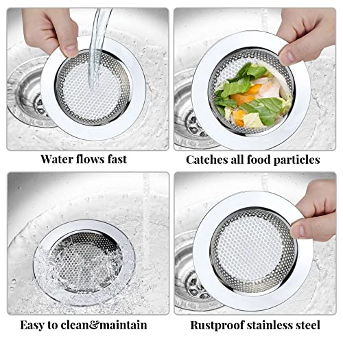 - 【EFFICIENT ANTI-CLOGGING】The stainless steel sink strainer has 2mm diameter holes, high density mesh traps food scraps efficiently without stopping the flow of water, preventing your plumbing from damage or clogging. Save the time and money you may spend on a plumber.