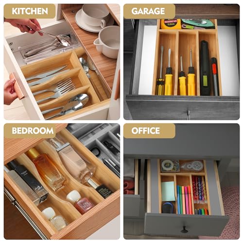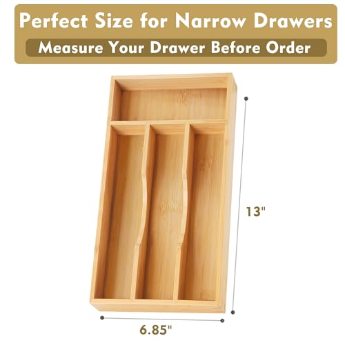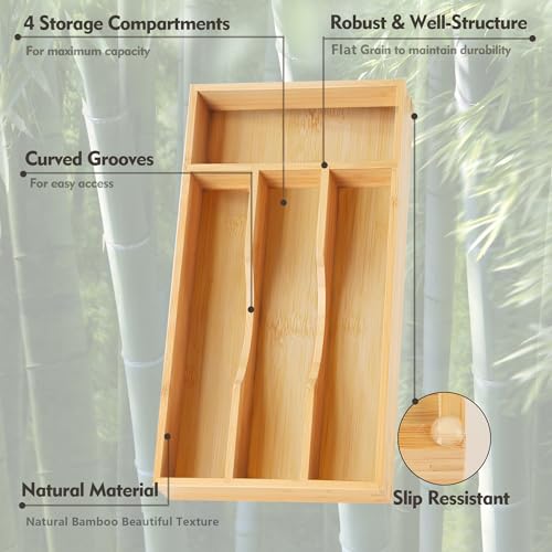 Upassion - منظم خشبي مصنوع من البامبو لأدراج المطبخ من اباسشن، حامل لأدوات المائدة الفضية مقاس 18 سم للأدراج الصغيرة، منظم خشبي لأدوات المائدة بـ 4 فتحات