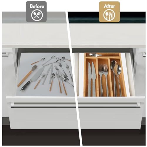 - ✅【متين وجيد الصنع】منظم أدوات المائدة الخاص بنا للدرج مصنوعة من البامبو المحبب الطبيعي بعمر يزيد عن 4 سنوات، مما يجعل منظم أدوات المائدة متينًا بما يكفي للاستخدام لفترة طويلة. تحافظ المادة الصديقة للبيئة على أدوات المائدة والأواني الخاصة بنا مقاومة للماء والروائح الكريهة. حتى السكين لن يترك أي خدوش عليه. على عكس منظم الأدراج البلاستيكي والمعدني، فإن منظم أدوات المائدة الخاص بنا أكثر كلاسيكية وطبيعية، ويتميز بلون وملمس طبيعي ومتساوي.