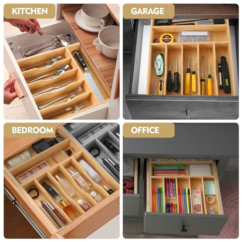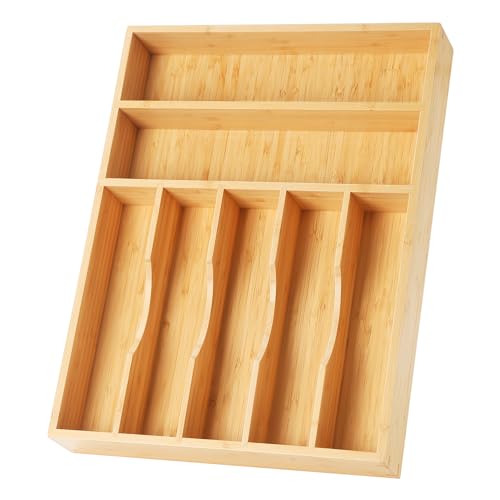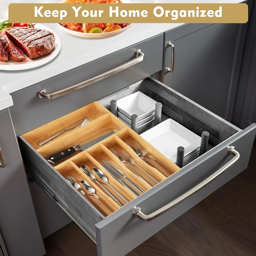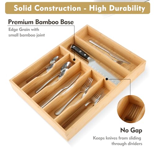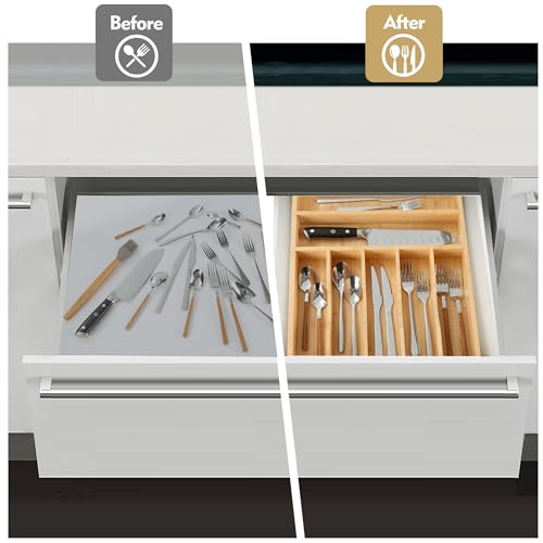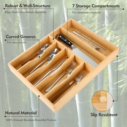 Upassion - منظم ادوات المائدة الفضية بيسيلورد من اباسشن ادراج المطبخ 13 انش حامل الخيزران في درج 7 فتحات