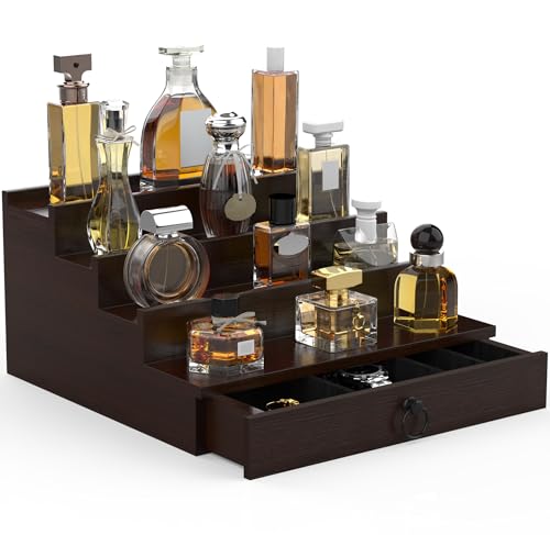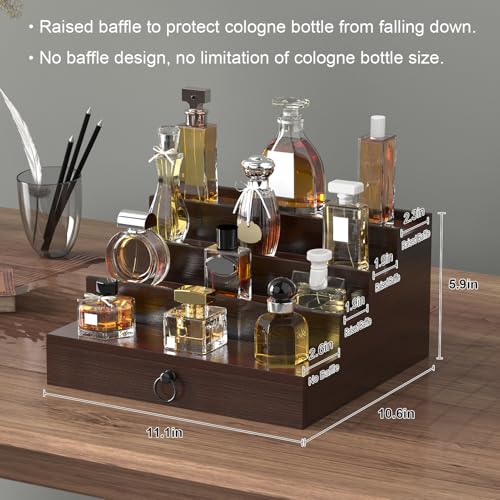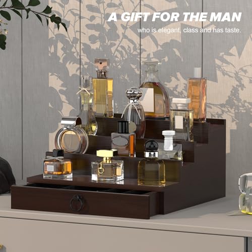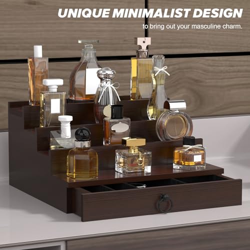 upcessory - منظم كولونيا للرجال، منظم عطور خشبي من 4 طبقات مع درج مبطن من اللباد وحجرة مخفية، حامل عرض عطور، هدية للرجال