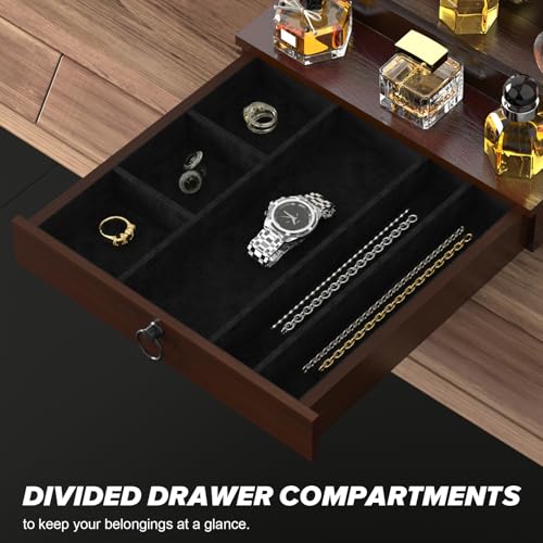 - يحافظ الدرج الفاصل السفلي لرف عرض الكولونيا على متعلقاتك في لمح البصر، مثل الساعات والخواتم والأساور والقلائد.