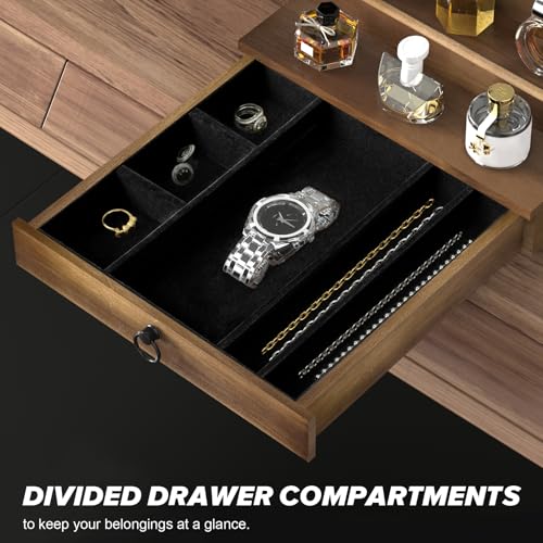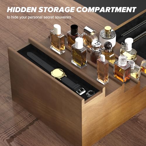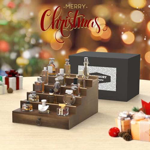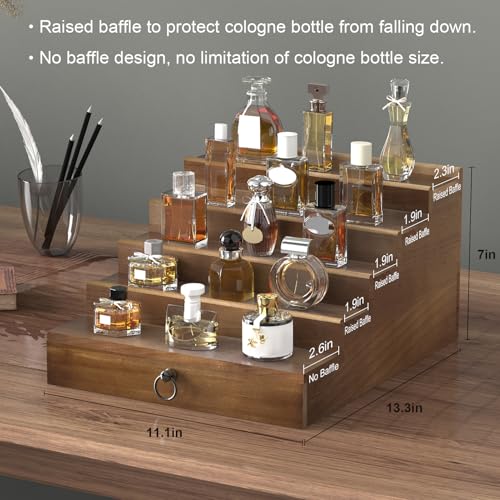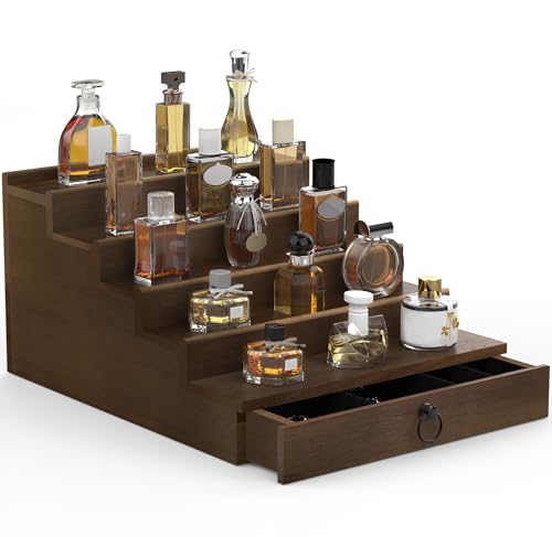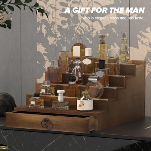 upcessory - Cologne Organizer for Men, 5 Tier Cologne Shelf, Cologne Stand with Drawer and Hidden Compartment Brown Perfume Display Holder