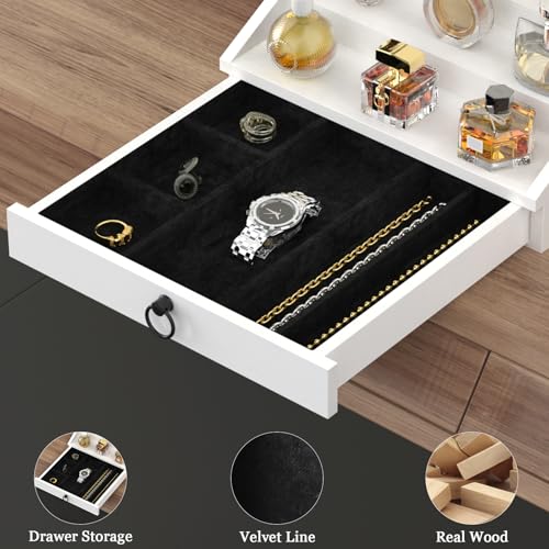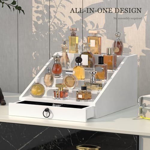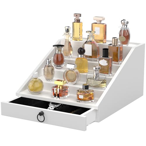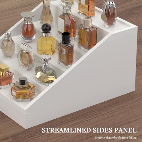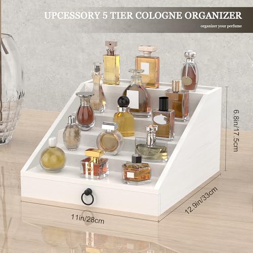 upcessory - منظم كولونيا خشبي للرجال من 5 طبقات، حامل كولونيا منظم للعطور مع درج مبطن مخملي وحامل عرض العطور المخفي، هدية لطيفة (ابيض انيق)