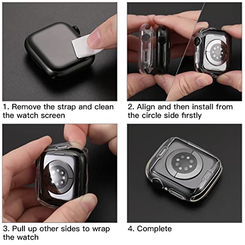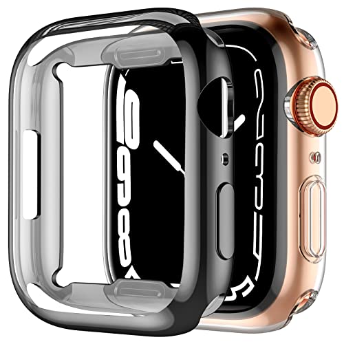 Upeak - يو بيك حافظة حماية كاملة من البولي يوريثين الحراري لساعة ابل سلسلة 7 و8 مقاس 45 ملم، غطاء واقي للشاشة من البولي يوريثين الحراري لسلسلة اي ووتش 7/8 مقاس 45 ملم، شفاف/اسود