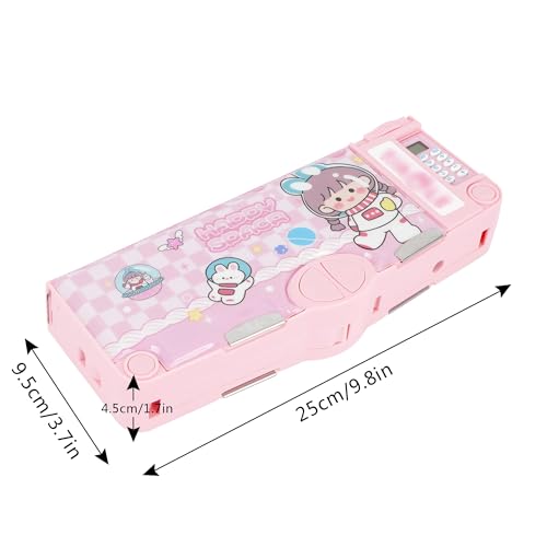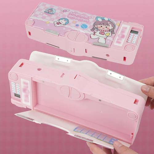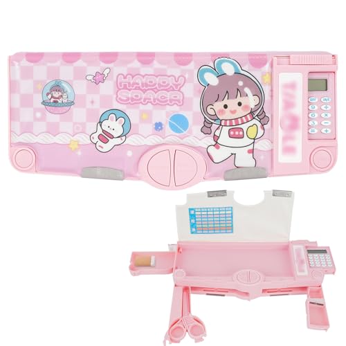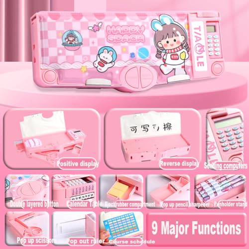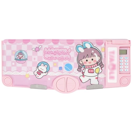 OBABO - [Upgrade] Pop Up Multifunction Pencil Case Cute Cartoon Pen Box Organizer Stationery With Calculator, Sharpener, Schedule, Whiteboard, School Supplies, Pink, 25 cm x 4.5 cm x 9.8 inches, fashion