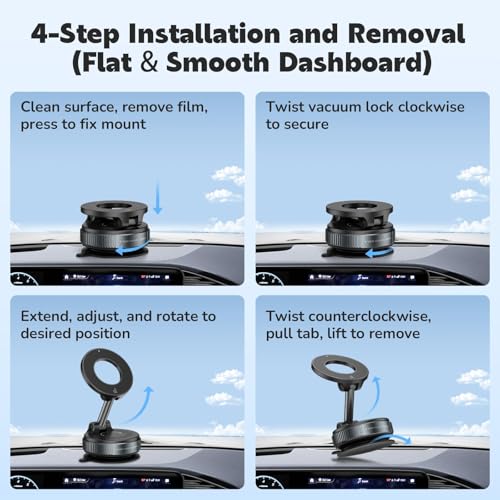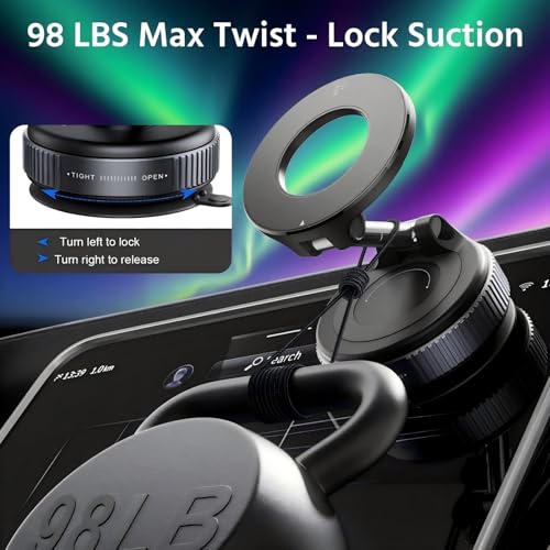 - 【Unbeatable Suction Power with Twist-Lock Tech】Car phone mount with reinforced vacuum suction + manual twist lock creates military-grade hold. Shake-proof design strengthens grip on bumpy roads – outperforms all sticky car mounts.