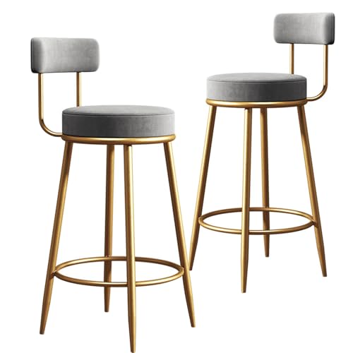 TIKHOME - Upholstered Velvet Bar Stools Set of 2,TIKHOME Counter Height Barstools with Back & Footrest Metal Legs,25.6" Modern Bar Chair for Kitchen Island, Dining Room,Cafes