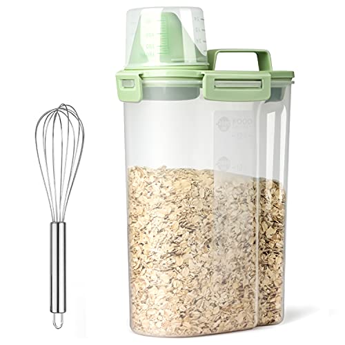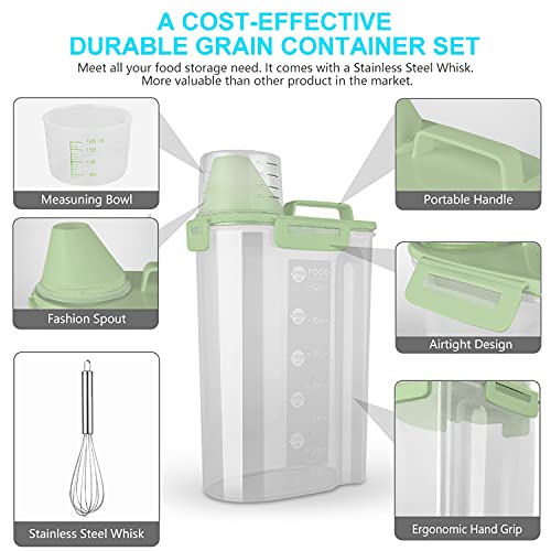 Uppetly - Rice Airtight Dry Food Storage Containers, BPA Free Plastic Storage Bin Dispenser with Pourable Spout, Measuring cup for Cereal, Flour and Baking Supplies, Include a Stainless Steel Whisk