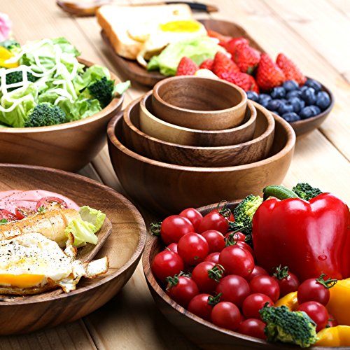 - Available in seven sizes: (11 inch x 3.4 inch), (9.8 inch x 3.9 inch), (10 inch x 3 inch), (9.4 inch x 3 inch), (8.7 inch x 3 inch), (7.9 inch x 3 inch), (7 inch x 3 inch). large wooden kitchen bowl is perfect for salads, fruits, popcorn, pasta, cereals, chips, snacks.