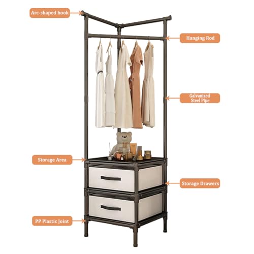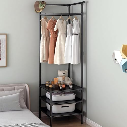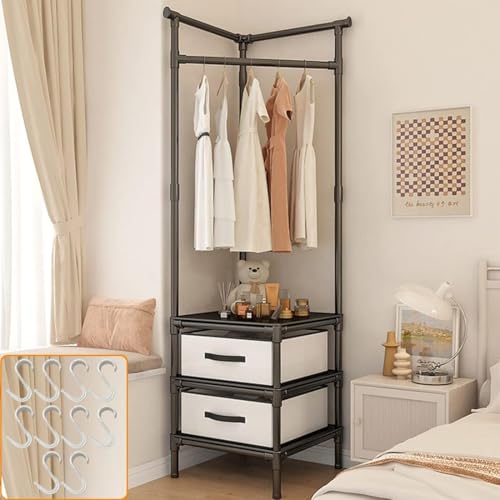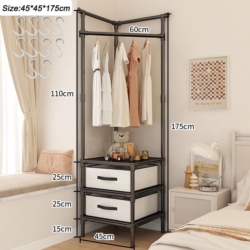 Uptyia - Corner Clothes Rack Closet Organizer for Estrada, Bedroom, Apartment, Living Room or Office, 45 x 45 x 175 cm (Black)