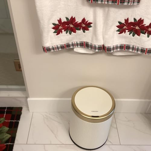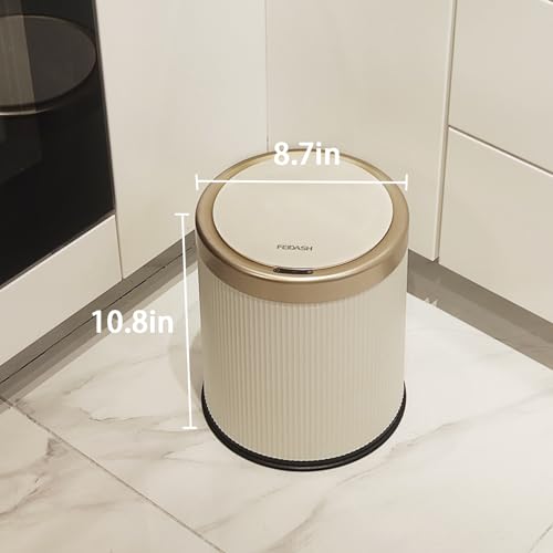 URALFA - URALFA Automatic Motion Sensor Bathroom Trash Can with Lid, 10.5 Liter / 2.8 Gallon Touchless Trash Bin, Smart Dog Proof Garbage Can, Small Waste Basket for Toilet, Office, Bedroom (Cream White)