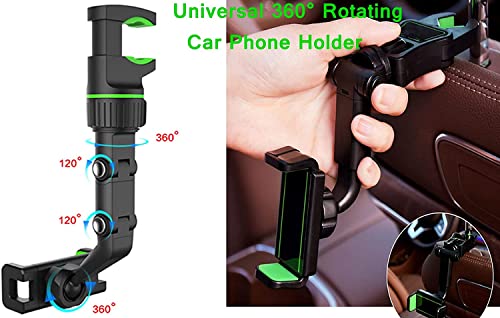 Urallain - Urallain Car Mount Phone Holder, 360° Rotatable Rearview Mirror Mount, Universal Compatible with Smartphones & GPS, Green