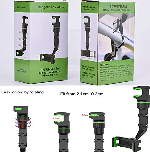 - 【High Quality Material】Our 360° rear view mirror phone holder is made of high-quality ABS and metal material, wear-resistant, durable, stable and firm, not easy to break, can be used for a long time. Adjustable tightness mirror phone holder, so that your phone no longer shakes during driving.