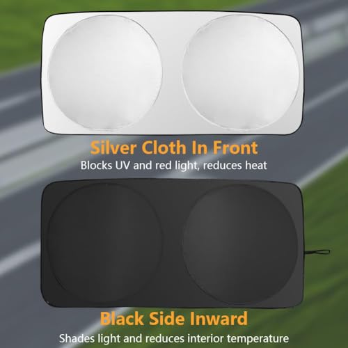 - 🚗 EASY TO USE: Take it out of its lid, no suction cups or adhesives required, simply place the windshield with the silver side outwards and secure it in place by folding the sun visors down.