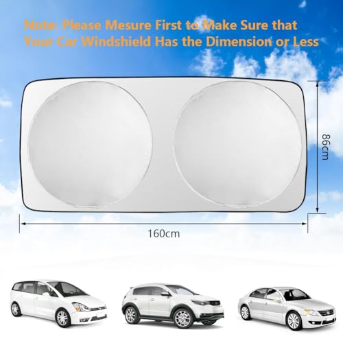 - 🚗 OPTIMAL SIZE: The size is 165*94cm, our sun visor fits most standard car windshields. Before buying this product, you better check the size of the car windshield.