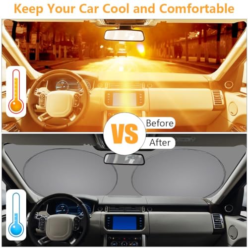 - 🚗 PROTECTION FROM THE BEST: Our car windshield cover protects the interior of your vehicles by reflecting the sun's rays, prevents your pets, passengers and yourself from harmful rays and damage from overheating, provides a comfortable journey.