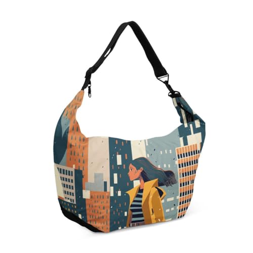 Generic - Urban Art Crescent Bag, City Skyline Design, Adjustable Strap, Artistic Hobo Style