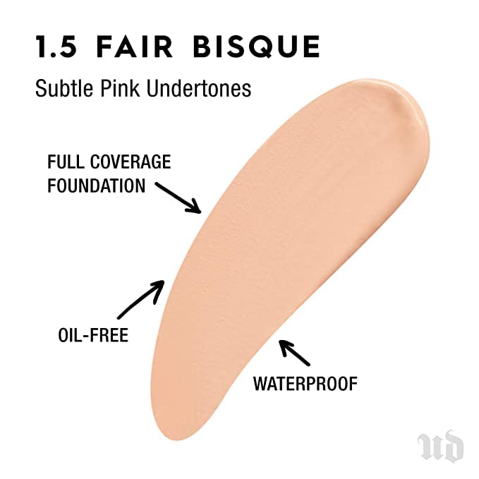 URBAN DECAY - Urban Decay All Nighter Waterproof Long Wear Liquid Foundation, Travel Size - Shade 1.5 Fair Bisque (14ml)