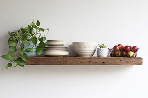 Urban Legacy - أرفف خشب الحظيرة المعاد تدويره من اوربان ليجاسي | مصنوعة يدويا في لانكستر على الطراز الأميشي، تصميم ريفي عائم مع حوامل | سعة وزن عالية، 2 قطعة (حامل طبيعي بتصميم بسيط مقاس 1.2 م × 28 × 7.6 سم)