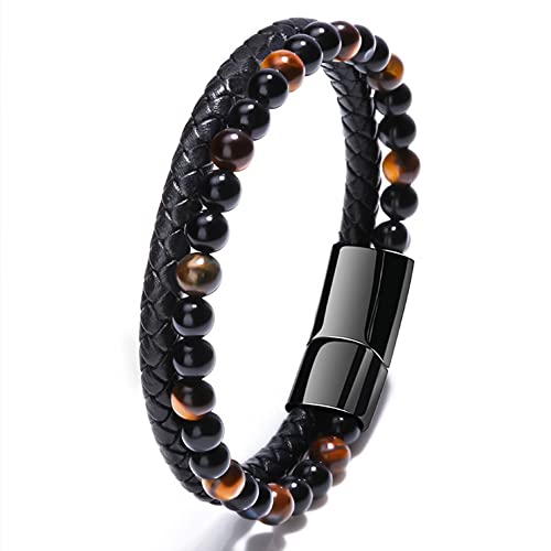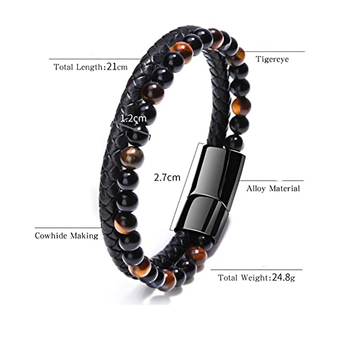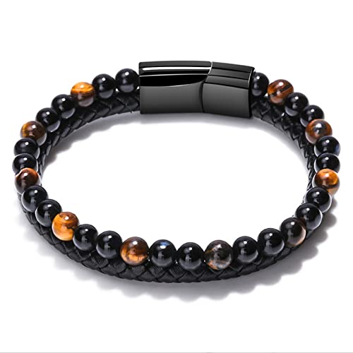 URBAN SHe° - URBAN SHe° Faux Leather Paracord Tiger Eye Beaded Bracelet for Men Braided Wristband Stackable Cuff mens leather bracelet 21cm Bracelet Uncle, Faux Leather Stainless Steel