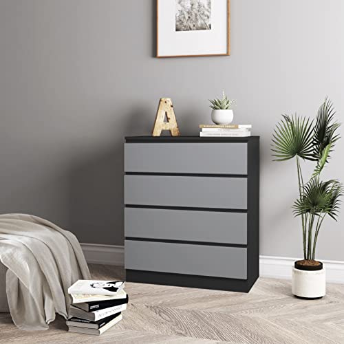 URBNLIVING - URBNLIVING 4 Or 5 Drawer Skagen Wooden Bedroom Chest Cabinet No Handle Storage Cupboard Modern (Black Carcass + Grey Drawers, 4 Drawers)