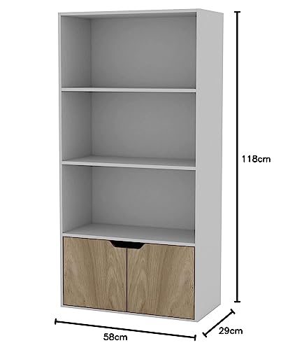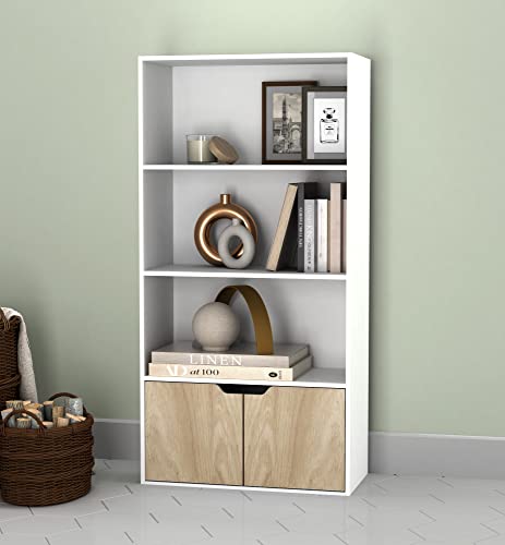 URBNLIVING - خزانة كتب خشبية عريضة من 4 طبقات مع بابين ورفوف تخزين ووحدة ابيض ابواب خشب البلوط .