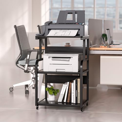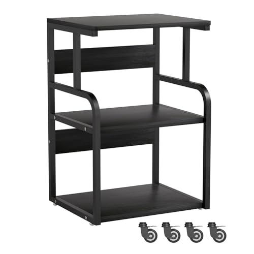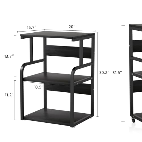 URLINE - Large Printer Stand with 3-Tier Wood Storage Shelves -Multi-Purpose Desk Organizer- for Printer Scanner Fax Home Office Use with Wheels (Black)