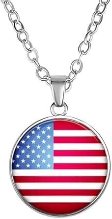 Generic - USA Flag Necklace, Tricolor National Flag Design, Silver Metal Necklace, Football Team Fan Souvenir