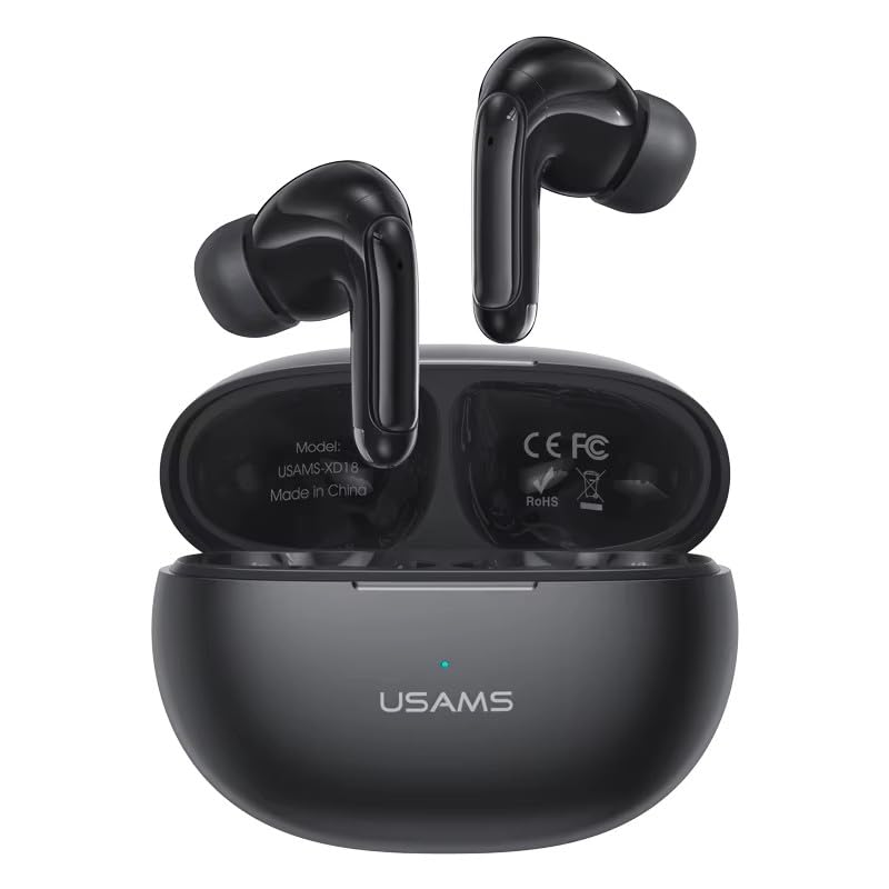 USAMS - USAMS XD18 Wireless Bluetooth Earbuds, In-Ear TWS Headphones with Charging Case, Black