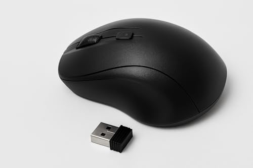 - ماوس بتقنية اتصال لاسلكي 2.4G مع مستقبل USB صغير (Nano Receiver) يوفّر سرعة وثبات حتى مسافة 10 أمتار.